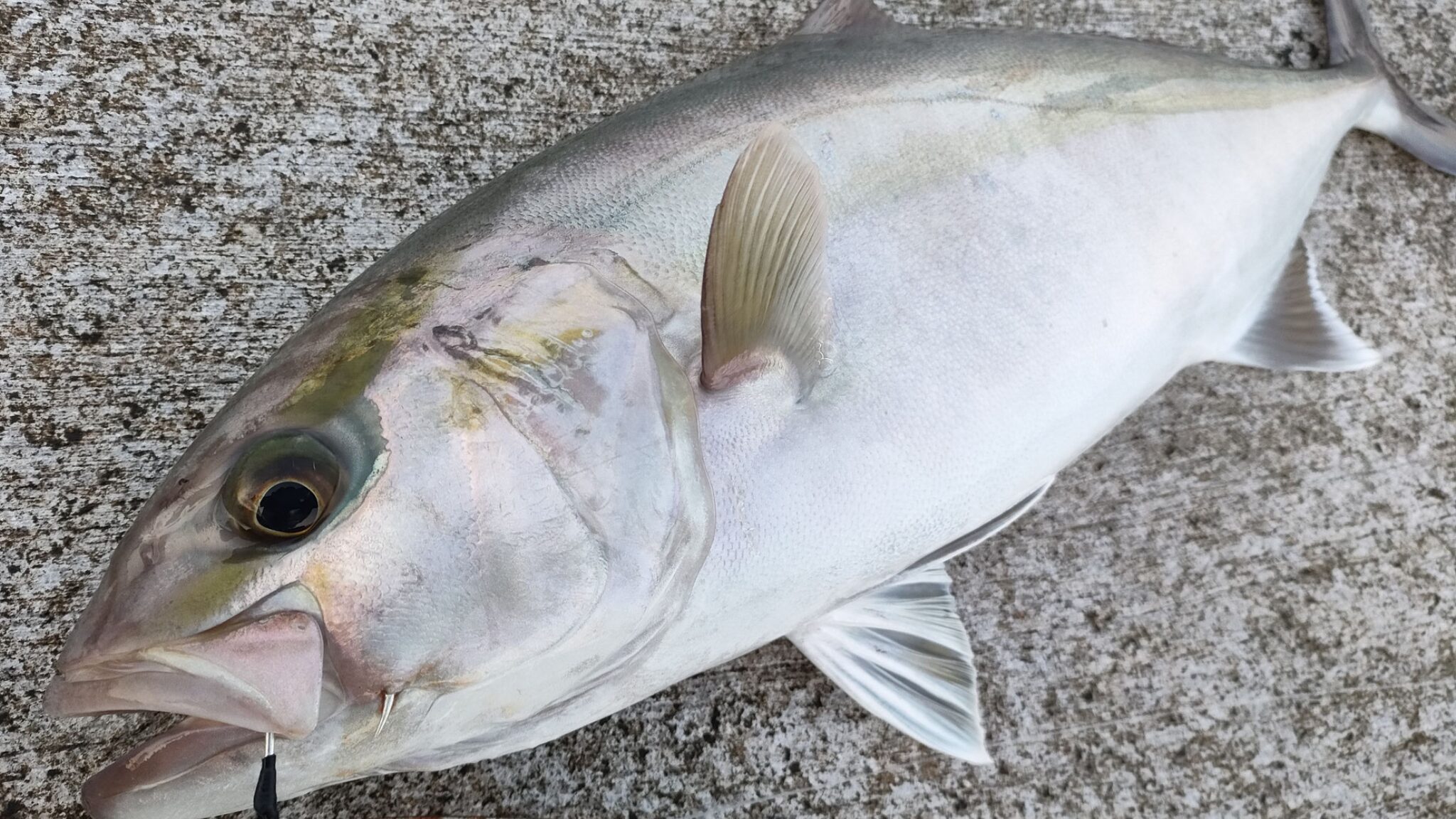 カンパチが釣れたので、あとはハガツオが釣りたいと思って、ルアーをジグからミノーに変えてしばらく投げてみましたが、アタリはなかったので終了しました。