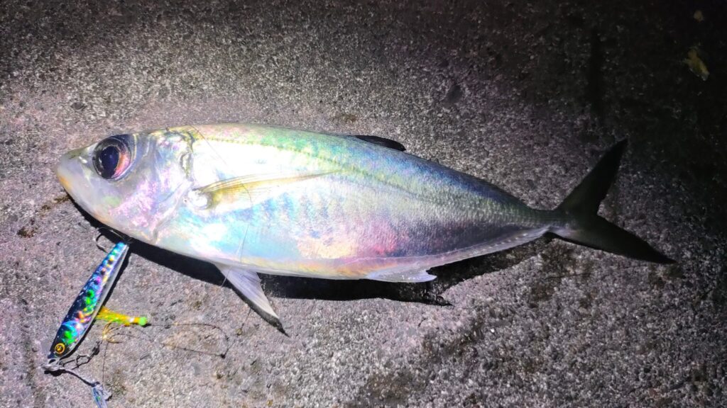 表層タダ巻きで釣れることがわかれば、そこからは投げて巻くだけの省エネ釣りです。底を取らなくていいと根掛かりせずジグのロストも減るのでいいことに気が付きました。