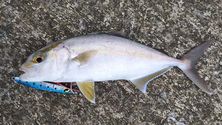 カンパチも釣れれば大体2㎏から4㎏の良型が釣れているという情報でしたが、なぜか私の仕掛けにかかるカンパチは小さい。最近こんなに小さいカンパチ釣っている人は見たことがないです。