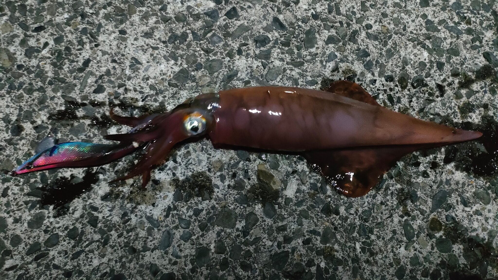 すんなり上がってきて、ケンサキイカを1杯キャッチできました。