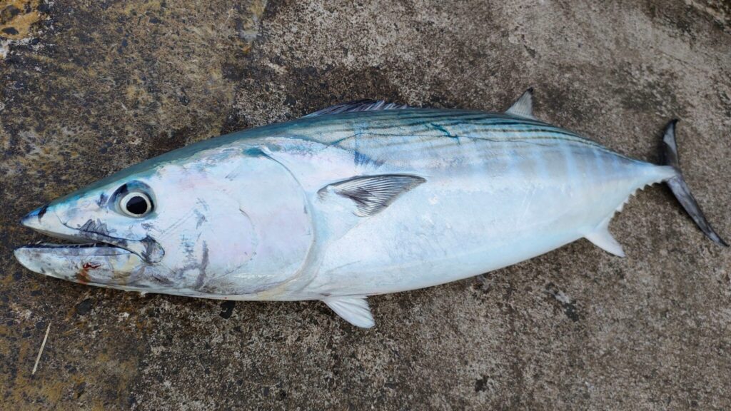 神津島で釣れるサバはほとんどがゴマサバで、マサバより脂が少なく、味は劣ります。