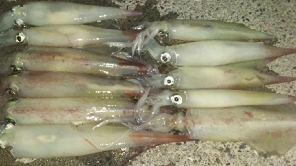 神津島ではエサ巻きスッテで釣るのが一般的ですが、エギングで狙うのもオススメです。アカイカは秋のアオリイカと同じくらい簡単に釣れるので、エギングの初心者の方は練習になると思います。