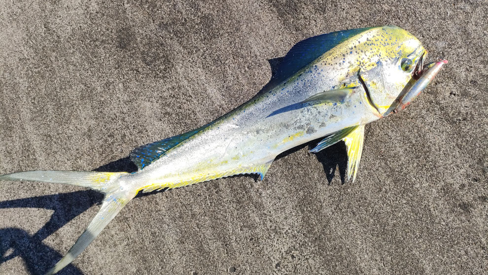 トビウオやダツなどが跳ねているところではシイラが追いかけている可能性があります。また漂流物につくと言われているので漂流物があればその近くが狙い目です。