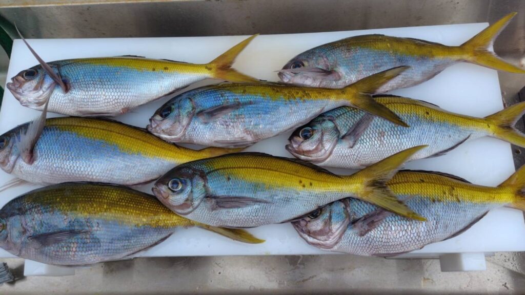 神津島ではオキタカベと呼ばれていて、名前のとおり色がタカベに似ていて沖の方に生息しています。
